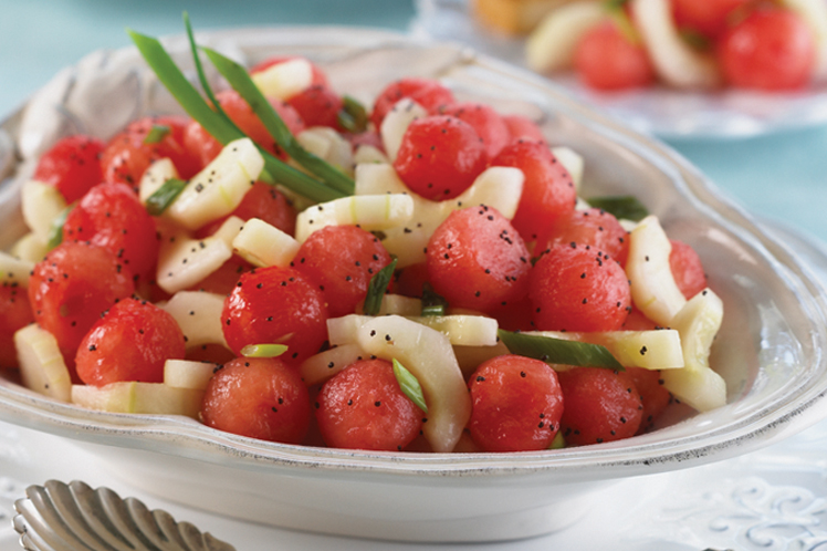 During Virginia’s hot summer months, melons abound. Grab a piece of ripe, juicy melon and enjoy it al fresco, or use it in one of these mouth-watering recipes. The watermelon recipes are from the National Watermelon Promotion Board. And the sweet cantaloupe recipe comes from the Eastern Cantaloupe Growers Association.
