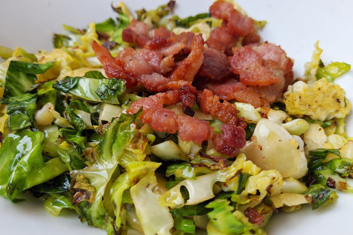 Shaved Brussels Sprouts with Bacon and Shallots